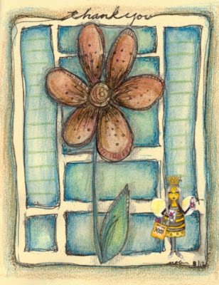 The stamped version was much prettier and different but I'm satisfied, I got the "doodle itch" scratched in 10 minutes time. Draw it with a black Micron pen, color with watercolor pencils then swish some water using a water filled brush. DONE! .... well, done enough to suit my needs which was remember the leaves on swills idea and to get pen to paper... :-)
